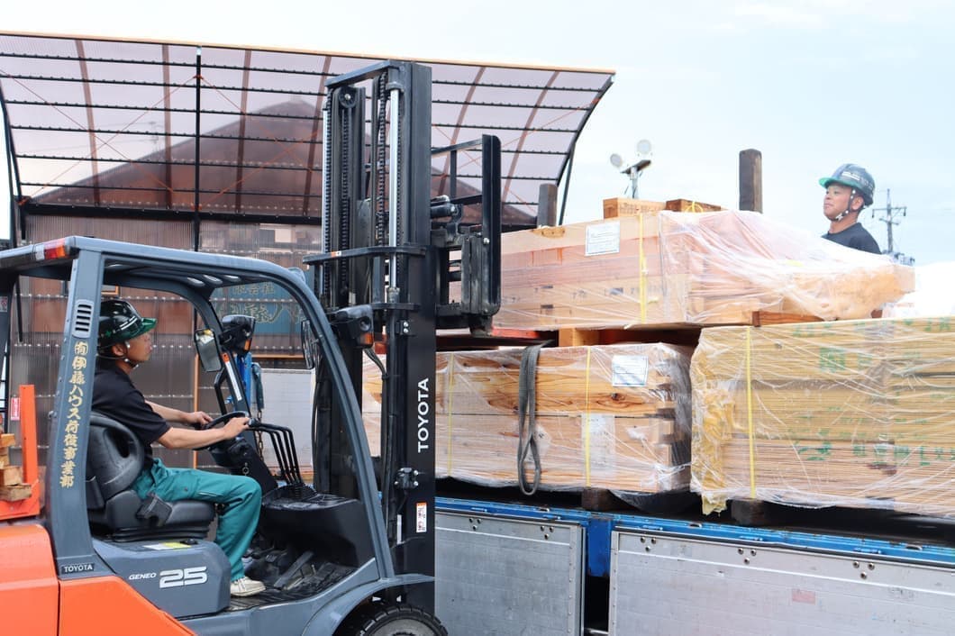 重量があったため、8tユニック車で配送しました。(積込午後~、翌日8:00着)重量5100㎏ 長物6m